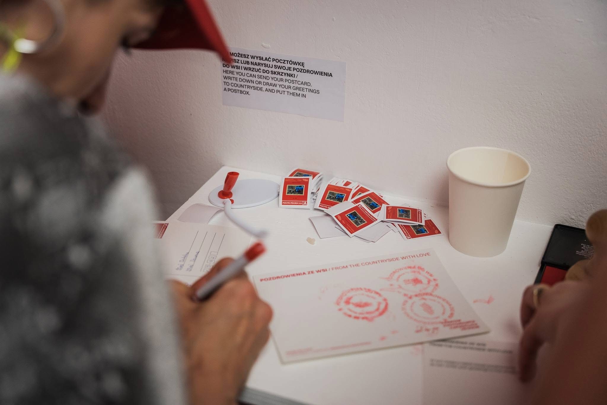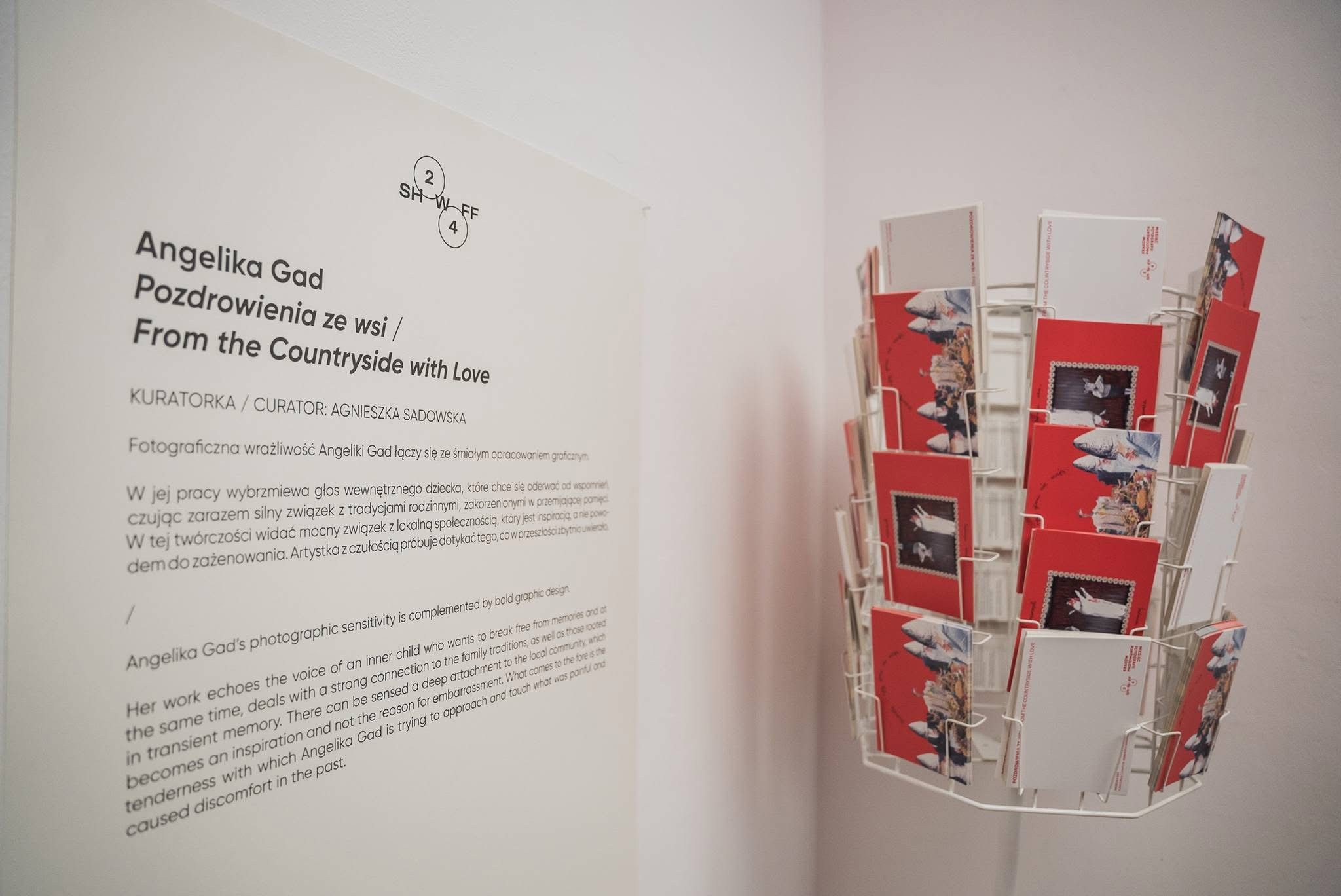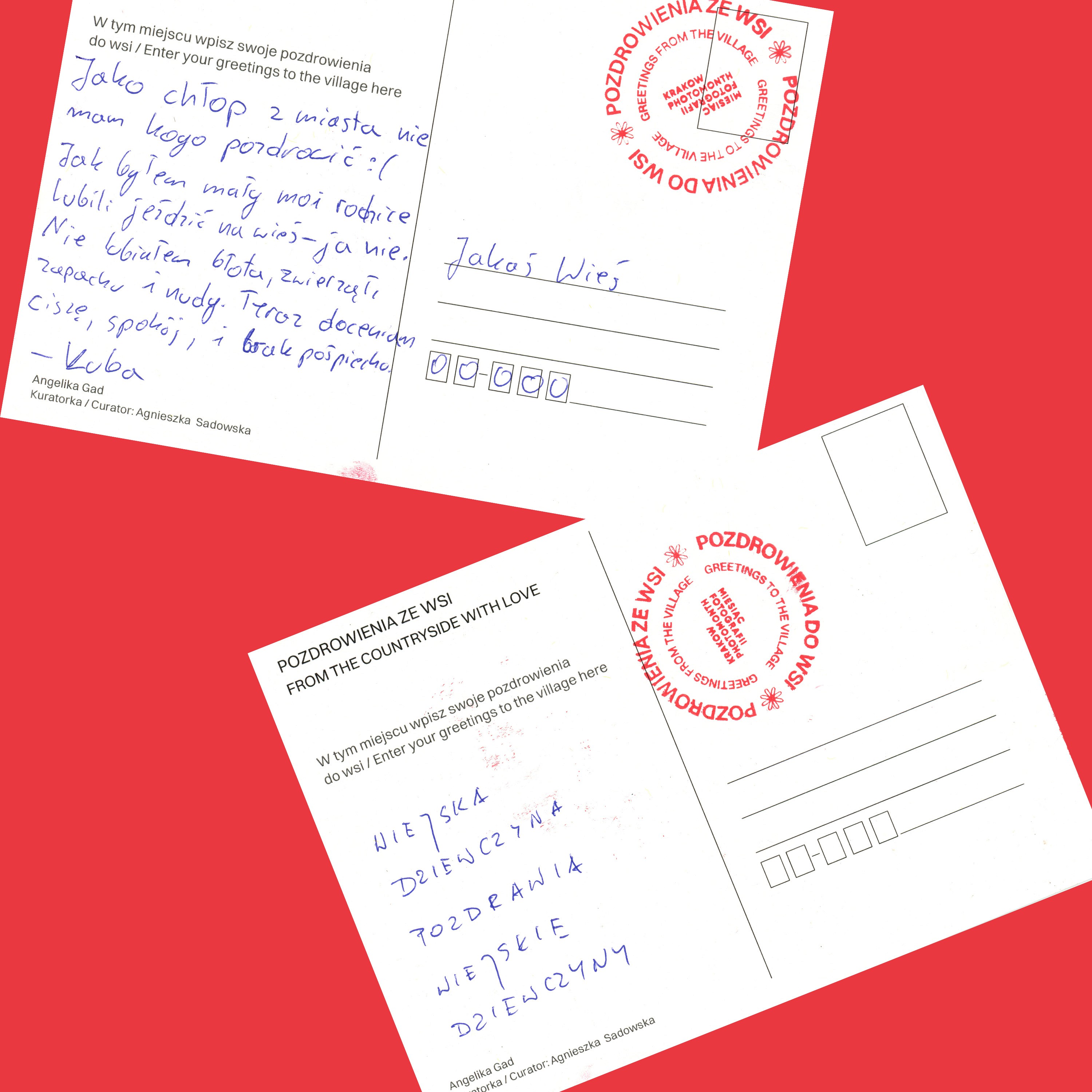 Today, when we send postcards only occasionally, most often from exotic, sun-lit places, from the magic lands of brightness and happiness, Angelika Gad goes against the grain. She sends us love from forgotten, increasingly abandoned countryside. She tells us about it, juxtaposing memories with everyday life, simultaneously provoking viewers to perform a specific gesture: Why won’t you send a postcard? To yourself and to the countryside, to a village. Your own – brought out from oblivion, the visited, or even the imagined one. Why wouldn’t you send love to yourself, your memories, and perceptions, or to the countryside viewed with all its imperfections? Send postcards with love and let them reach the furthest places in the world.